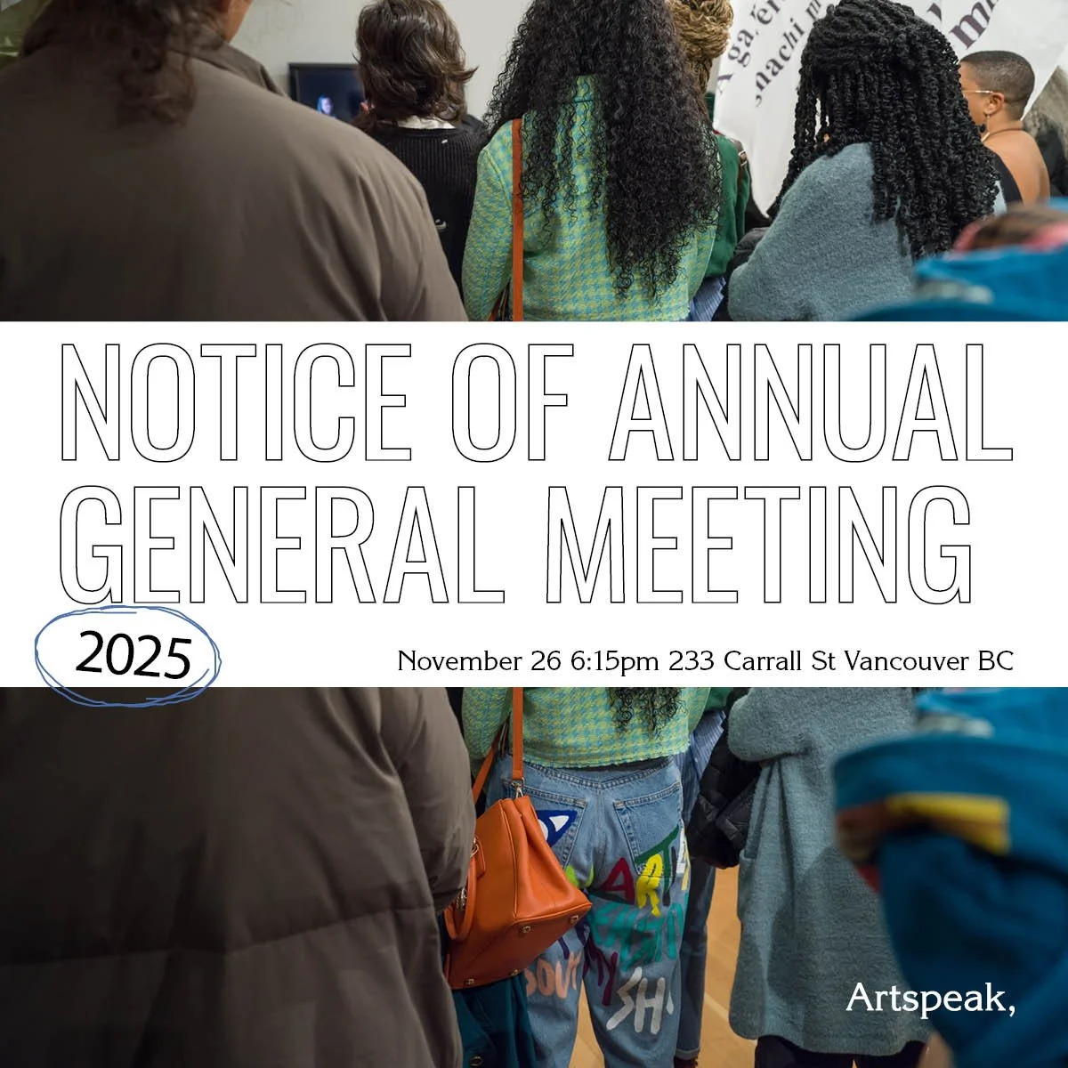 Artspeak is an exhibition and programming space encouraging dialogue between contemporary visual art and writing. Artspeak is committed to intersectional participation and exchange.